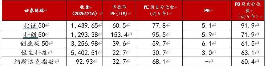 将创50与北证50、科创50等科创类指数进行比较可见,当前科创50 PE 153.4倍,是各类指数中PE最贵的,北证50其次,创50居中,亦高于纳指及恒生科技。