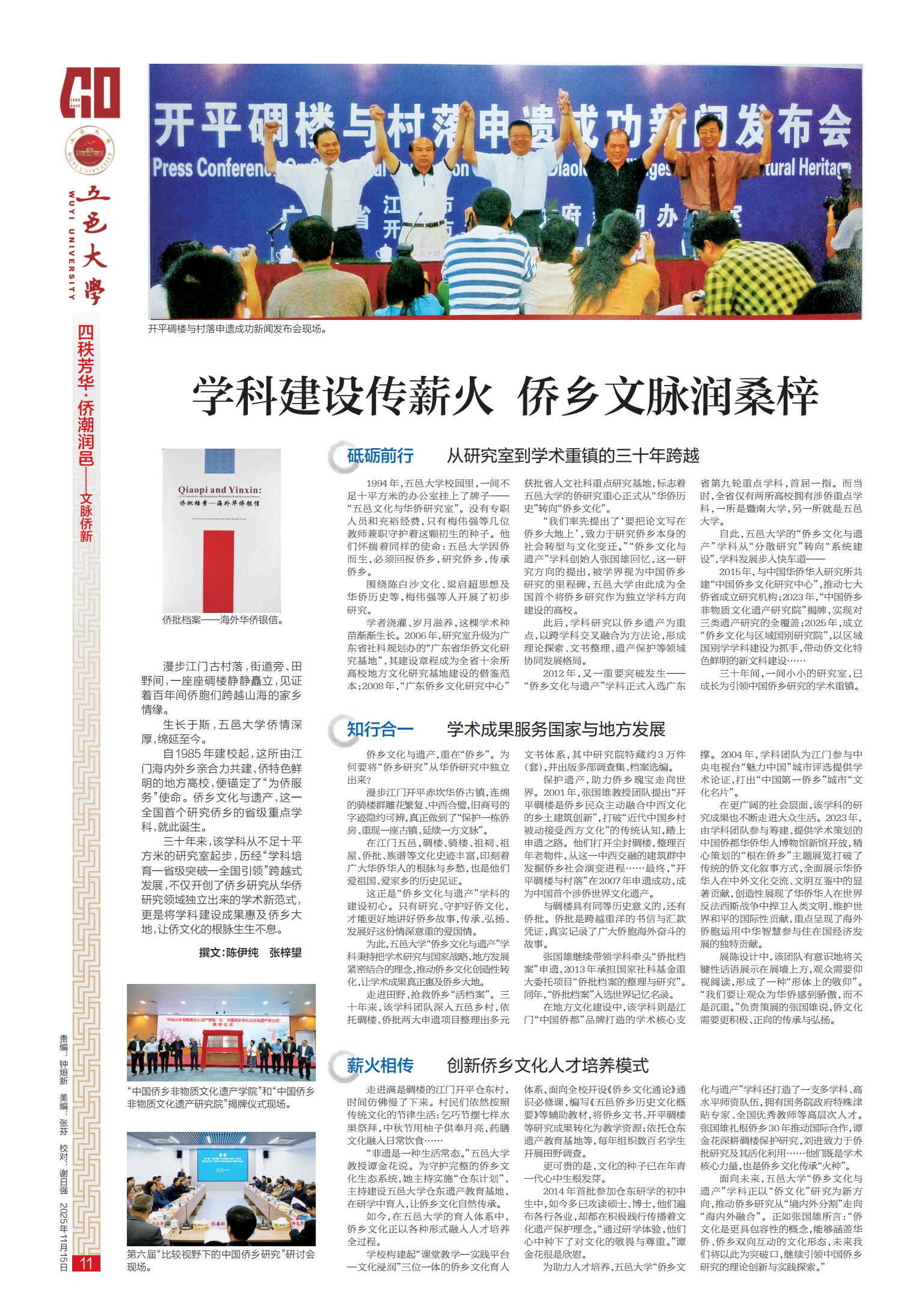 通过持续深化“侨”研究,拓展与海外侨团等交流合作,如今的五邑大学已成为连接海内外乡亲、传播中华文化的重要桥梁。这份独特的“侨缘”,是学校过去快速发展的重要动力,也必将成为未来扬帆远航的宝贵风帆。